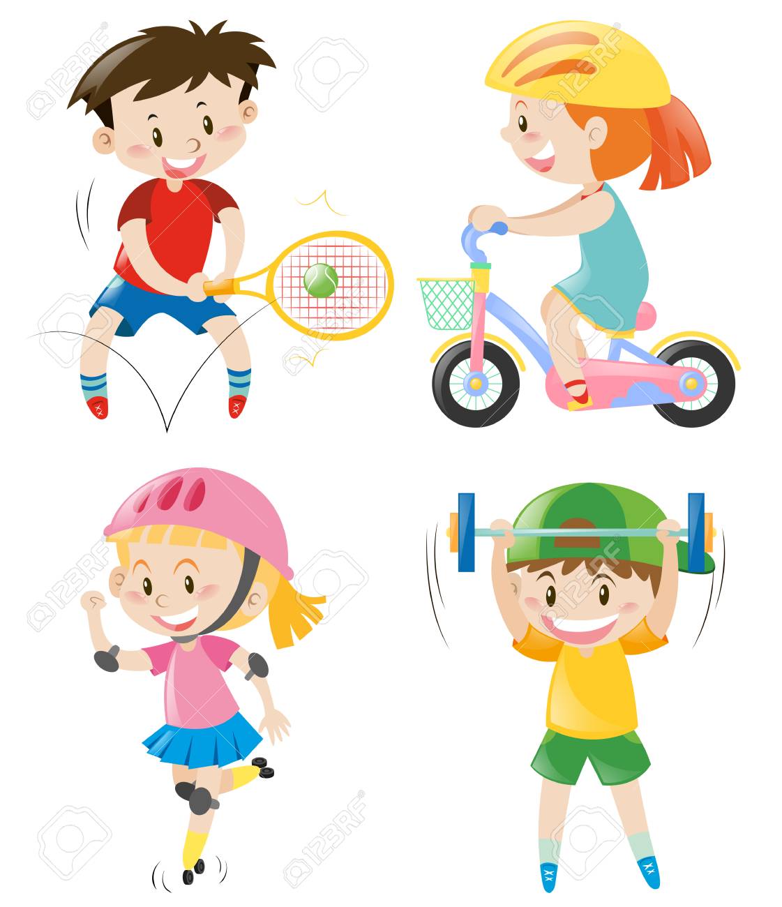 Download Images Library Photos and Pictures. Niños y personas haciendo diferentes ejercicios | Vector Gratis Vectores de stock de Niño haciendo ejercicio, ilustraciones de Niño haciendo ejercicio sin royalties | Depositphotos® Chica haciendo ejercicio bicicleta ab - Descargar Vectores Gratis, Illustrator Graficos, Plantillas Diseño Pin on Stamps